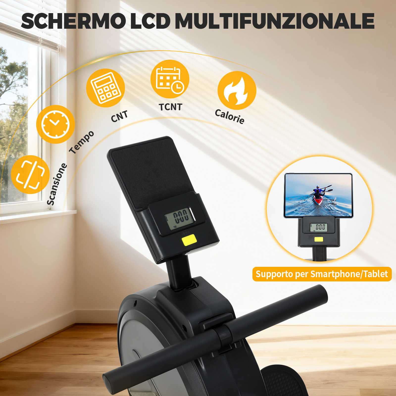 With 8 levels of adjustable tension, this rower adapts to every fitness stage: